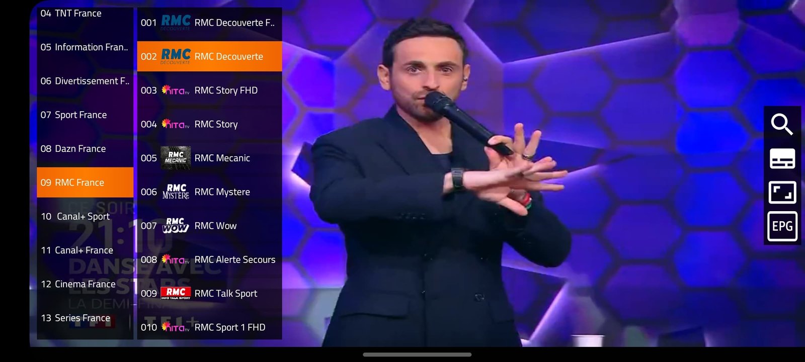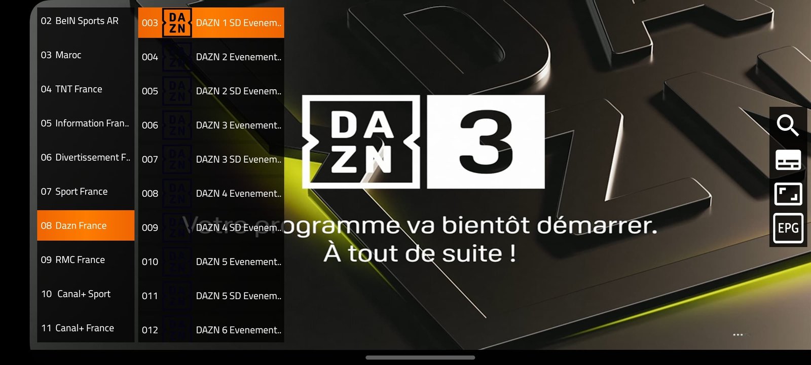 Chaînes en direct (sports, cinéma, etc.)